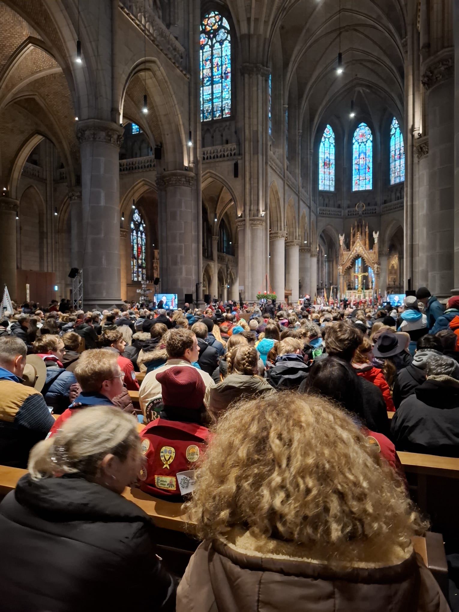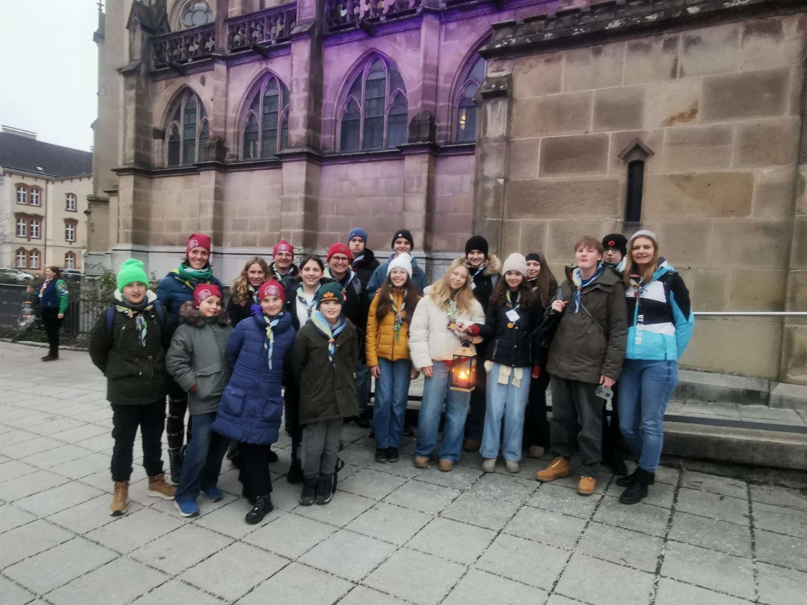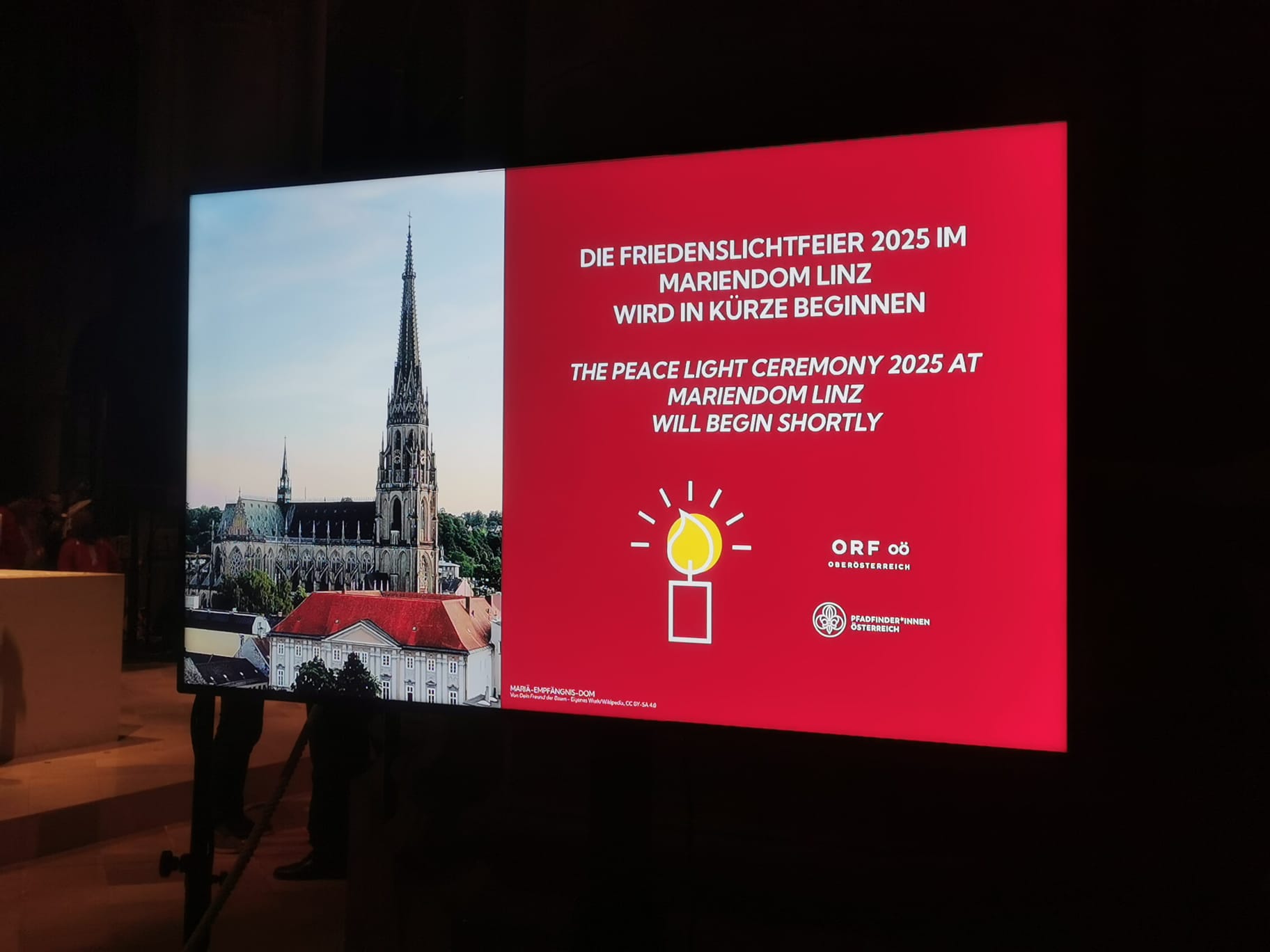 CaEx und GuSp machten sich am frühen Nachmittag des 6. Dezember auf den Weg zum Mariendom in Linz zur Friedenslichtfeier der Pfadfinder. Der Dom war bis zum letzten Stehplatz gefüllt mit Pfadfindern aus der ganzen Welt.