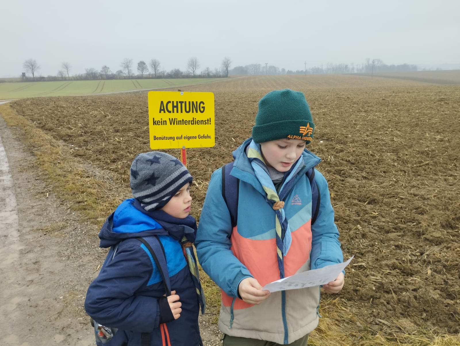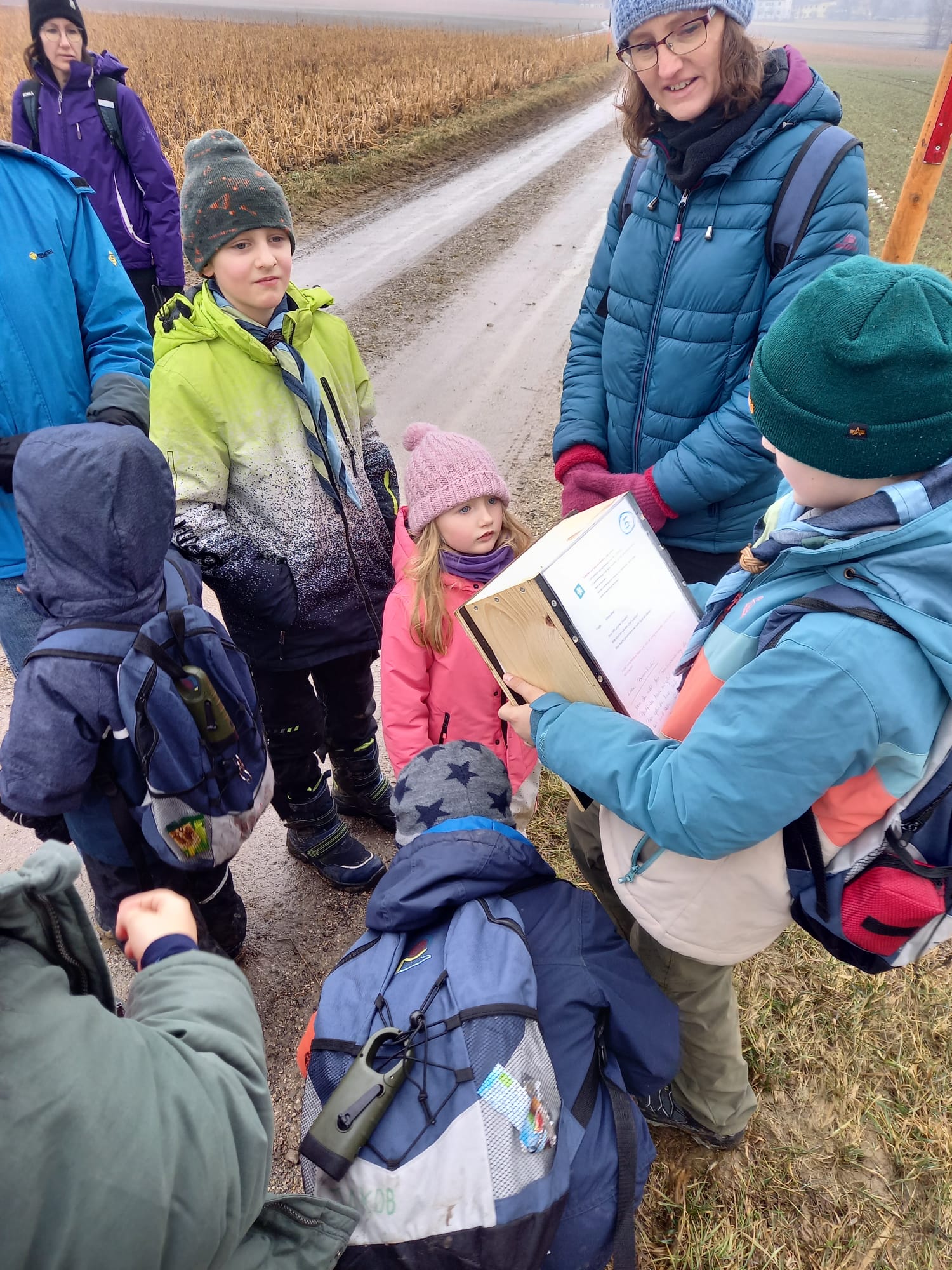Bei der diesjährigen Winterwanderung waren wir gemeinsam mit allen drei Gruppen rund um St. Marien unterwegs. Ein großes Dankeschön an die CaEx, die unterwegs ein paar Rätsel zu den acht Pfadfinderwerten für uns vorbereitet haben.