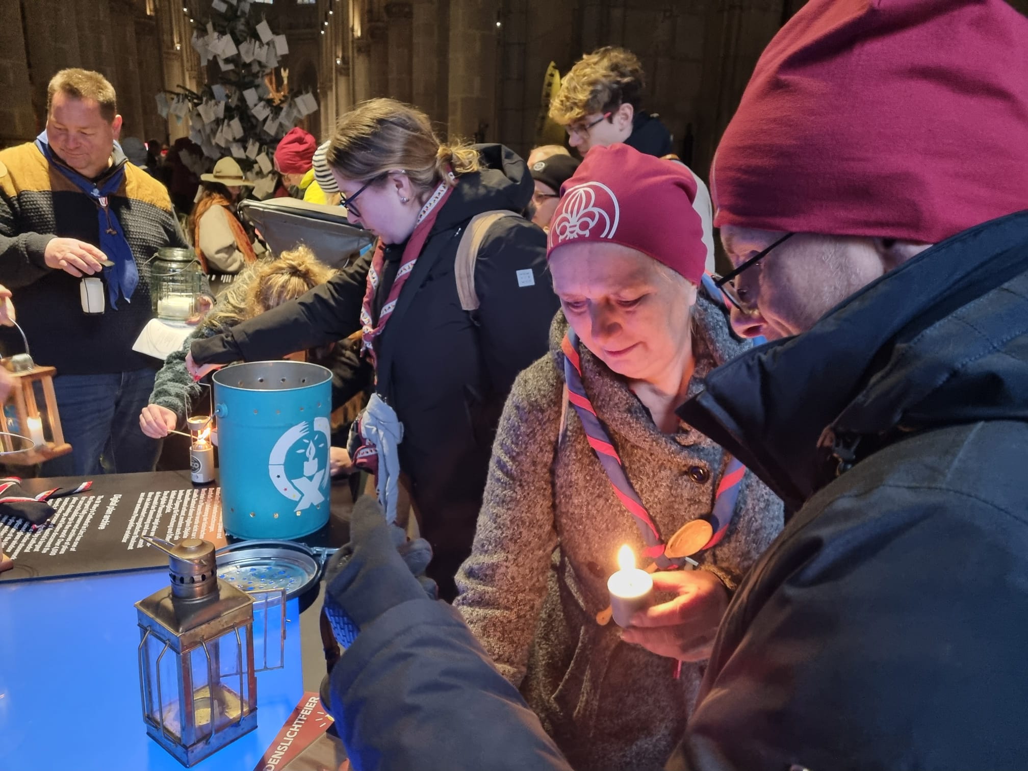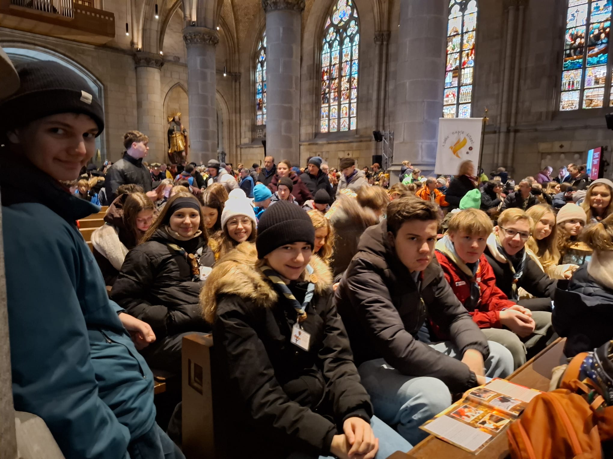 CaEx und GuSp machten sich am frühen Nachmittag des 6. Dezember auf den Weg zum Mariendom in Linz zur Friedenslichtfeier der Pfadfinder. Der Dom war bis zum letzten Stehplatz gefüllt mit Pfadfindern aus der ganzen Welt.